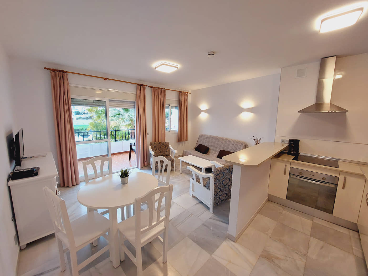 Lejligheder: Apt. Las Rosas består af 3 bygninger med 41 lejligheder fordelt på 2 etager. Opholdet foregår i deres klassiske 2 værelses lejlighed. Lejlighederne er rummelige, komfortable og veludstyrede. Hvilket er med til at gøre dit ophold bekvemt. Lejlighederne er udstyret med et køkken der indeholder bla. køleskab, kaffemaskine, brødrister, elkedel, ovn, kogeplader og mikroovn. Der er også et badeværelse med et brusebad. I lejligheden finder du også sovesofa, tv og separat soveværelse. Alle lejlighederne har møbleret balkon / terrasse. Der er wifi i lejligheden.